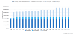 However, the benefits in relation to FuelEU take any last ball of doubt and knock it out the park. Savings in the region of USD 160,000 from 2026 to 2034 rocket to over USD 280,000 per year from 2040, as demands increase in stringency, highlighting the long-term value of compliance with maritime regulations.